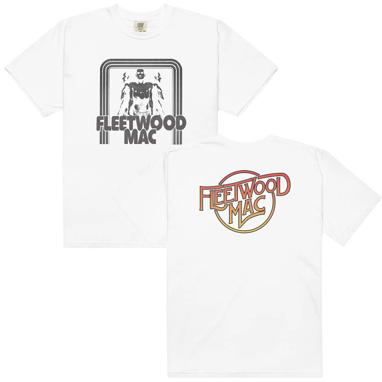Unisex white t-shirt with Mr. Wonderful album artwork on the front with colorful Fleetwood Mac logo on the reverse.
